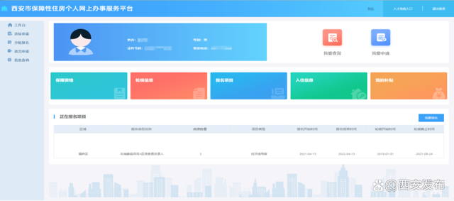 第三步:登錄完成后,頁面跳轉(zhuǎn)至西安市保障性住房個(gè)人網(wǎng)上辦事服務(wù)平臺(tái)工作臺(tái)。