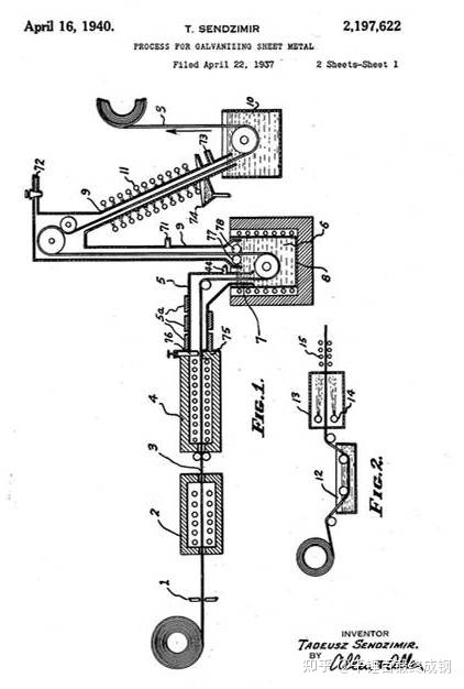1931年,近代冶金工業最杰出的工程師波蘭人森吉米爾在波蘭建成了世界上第一條氫氣還原法連續帶鋼熱鍍鋅生產線,該法在美國獲得專利并于1936-1937年在美國和法國Maubeuge鋼鐵廠分別建成以森吉米爾名字命名的工業性熱鍍鋅生產線,開創了帶鋼連續、高速、高質量熱鍍鋅的新紀元。