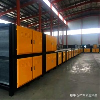 當有機廢氣進入高壓電場模塊內,高壓電場發生器在工作電壓的脈沖電暈作用下,發生強烈的輝光放電,電場模塊內遍布強紫光,有機廢氣中的有機物在強紫光作用下,可在極短的時間 內,廢氣瞬間被激活,自由能猛增成為活化分子,這些活化分子在發生頻繁碰撞的瞬間,將動廢氣處理能轉化成為分子內部的勢能,原有化學鍵發生斷裂,生成新的無害單一原子氣體,從而達到凈化目的。經反應后,有害的碳氫化合物轉化為無毒的和,因此,本法可利用較少的能耗,達到治理污染的目的,適用于大流量低濃度有機廢氣處理。