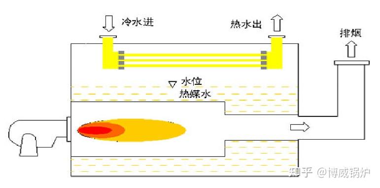 2、承壓鋼制鍋爐:顧名思義可以承壓,和常壓鍋爐主要區(qū)別在于鍋爐本體直接承受系統(tǒng)壓力,危險性較大。雖然承壓鍋爐既可以出高溫水,也可以出低溫水,但是當(dāng)需要產(chǎn)生低溫水時,熱媒水溫度較低,遇到高溫爐膛,極易產(chǎn)生受熱面低溫冷凝腐蝕。且熱媒水與外界系統(tǒng)也是直接連通,故鍋爐的氧腐蝕、結(jié)垢問題依然存在,且伴隨鍋爐不斷地結(jié)垢,鍋爐熱效率也逐年下降,一般承壓鍋爐熱效率在85%左右。