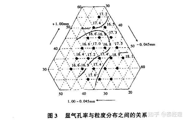 圖2示出了三角形中不同的流動區域。正如在該三角形中看到的那樣,小于0.045mm的顆粒稱為細顆粒,0.045一1mm的顆粒稱為中顆粒,大于1mm的顆粒稱為粗顆粒。由于原料 的Z電勢,按照這些粒度的重要等級進行了分類