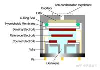 與傳感器接觸的目標氣體分子首先通過一個防止冷凝的隔膜,它也起到防塵的作用。那么氣體分子通過毛細管擴散,可能通過隨后的過濾器,然后通過疏水膜到達感測電極的表面。在那里分子立即被氧化或還原,從而產(chǎn)生或消耗電子,從而產(chǎn)生電流。