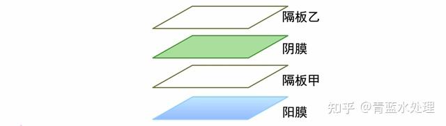 膜對由一對陰、陽離子交換膜和一對濃、淡水隔板簡體排列組成。隔板通常為隔網(類似編織網),其主要作用是隔開陰、陽離子交換膜,形成淡水室和濃水室。根據在電滲析器內不同的位置,隔板又分為淡水隔板和濃水隔板,兩者之間的差異主要是不同的配水孔和流水道位置。