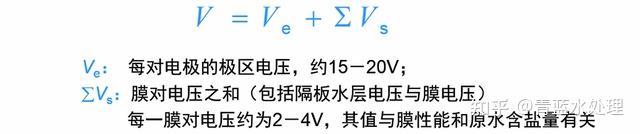 再一個就是電滲析的工作電壓,作為重要的操作工藝參數,指的是施加在兩個電極之間的操作電壓,工作電壓為每對電極的極區電壓與膜對電壓的和: