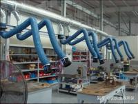 吸氣臂的外層為耐高溫的軟管,直徑為φ140-160,內(nèi)襯鋼絲。一方面能夠防止火花飛濺燙傷軟管,同時(shí)軟管結(jié)構(gòu)又保證了吸氣臂的移動(dòng)靈活,不被負(fù)壓吸扁。每根吸氣臂的設(shè)計(jì)流量通常為1,200m3/h,吸氣罩位于焊接位置上方的250-300mm高。