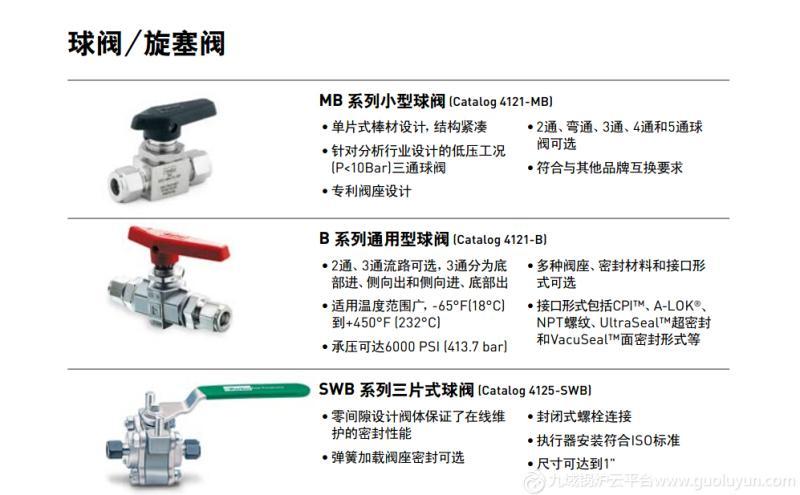 | 主營產品或服務 | parker派克截止閥,球閥,針閥,旋塞閥,單向閥,安全閥,閥組,減壓閥,過濾器,排放閥,吹掃閥,計量閥,,膜閥,背壓閥,氣化減壓閥,電磁閥,防爆電磁閥,流量控制器,PFA/PTFE閥門接頭軟管,分析系統,高壓鋼管,橡膠軟管,金屬軟管,多芯管,伴熱管,快換接頭,接頭,氣動電動執行器。 | ||