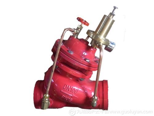 溝槽式水力控制閥就是用水壓控制的閥門,它由一個主閥及其附設的導管、導閥、針閥、球閥和壓力表等組成。根據使用目的、功能及場所的不同可演變成遙控浮球閥、減壓閥、緩閉止回閥、流量控制閥、泄壓閥、水力電動控制閥等。工作原理相同,都是以上下游壓力差△P為動力,由導閥控制,使隔膜液壓式差動操作.完全由水力自動調節,從而使主閥閥盤完全開啟或完全關閉或處于調節狀態。當進入隔膜上方控制室內的壓力水被排到大氣或下游低壓區時,作用在閥盤底部和隔膜下方的壓力值就大于上方的壓力值,所以將主閥閥盤推到完全開啟的位置;當進入隔膜上方控制室的壓力水不能排到大氣或下游低壓區時,作用在隔膜上方的壓力值就大于下方的壓力值.所以就會把主閥閥盤壓到完全關閉的位置;當隔膜上方控制室內的壓力值處于入口壓力與出口壓力中間時.主閥閥盤就處于調節狀態,其調節位置取決于導管系統中的針閥和可調導閥的聯合控制作用。可調導閥可以通過下游的出口壓力并隨它的變化而開大或關小其自身的小閥口.從而改變隔膜上方控制的壓力值.控制主閥閥盤的調節位置。