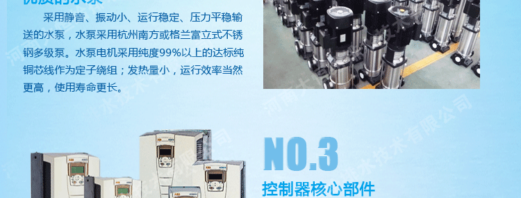 適用于具有自來水管網,需要增高水壓、調節流量的給水系統,可作為城鄉建筑小區、商務樓、賓館等場所二次加壓供水使用,產品具有外形美觀,安裝簡捷,節資節能,變頻控制,選材嚴格等特點。產品的衛生安全性符合《生活飲用水輸配水設備及防護材料衛生安全評價規范》標準的要求,該產品節能、環保,同時又避免了二次供水污染等特點,是一種理想的二次供水設備。