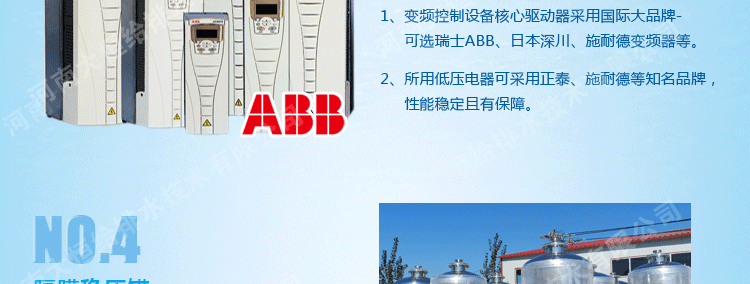 適用于具有自來水管網,需要增高水壓、調節流量的給水系統,可作為城鄉建筑小區、商務樓、賓館等場所二次加壓供水使用,產品具有外形美觀,安裝簡捷,節資節能,變頻控制,選材嚴格等特點。產品的衛生安全性符合《生活飲用水輸配水設備及防護材料衛生安全評價規范》標準的要求,該產品節能、環保,同時又避免了二次供水污染等特點,是一種理想的二次供水設備。