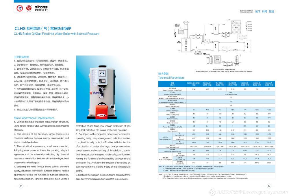 (1.6)-Y(Q)項目參數額定蒸發量(T/H)4568101520額定工作壓力(MPa)1.25(1.6)出水/回水溫度(℃)194(204)鍋爐設計效率(%)8%-92%水容積(m3)7.141010.213.916.73030滿水重量(t)22(23.5)24.7(26)25.5(26.5)32.5(34.5)38(42)74(78)78(82)耗電功率(KW)22.234.434.436367272電源(V)380適用燃料輕油、天然氣、重油、城市煤氣、石油液化氣計算耗量: