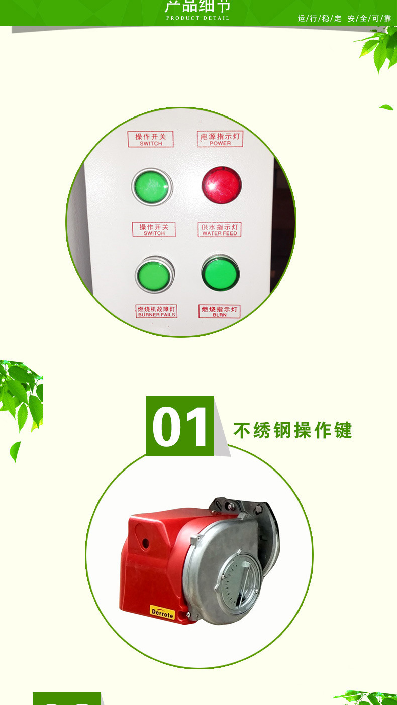 | 主營(yíng)產(chǎn)品或服務(wù) | 蒸汽發(fā)生器:燃?xì)庹羝l(fā)生器、燃油蒸汽發(fā)生器、生物質(zhì)蒸汽發(fā)生器、電加熱蒸汽發(fā)生器; 蒸汽鍋爐:燃?xì)庹羝仩t、燃油蒸汽鍋爐、生物質(zhì)蒸汽鍋爐、電加熱蒸汽鍋爐; 熱水鍋爐:燃?xì)鉄崴仩t、燃油熱水鍋爐、生物質(zhì)熱水鍋爐、電加熱熱水鍋爐; 燃燒機(jī):生物質(zhì)燃燒機(jī)、燃?xì)馊紵龣C(jī)、燃油燃燒機(jī)、醇基燃燒機(jī) | ||