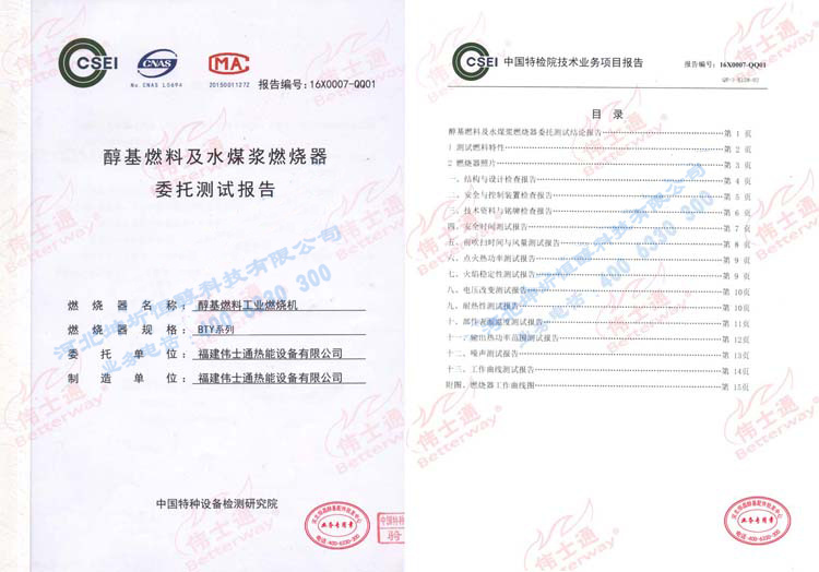 1、凡購買燃燒機的客戶均可贈送專項醇基燃燒機檢測報告