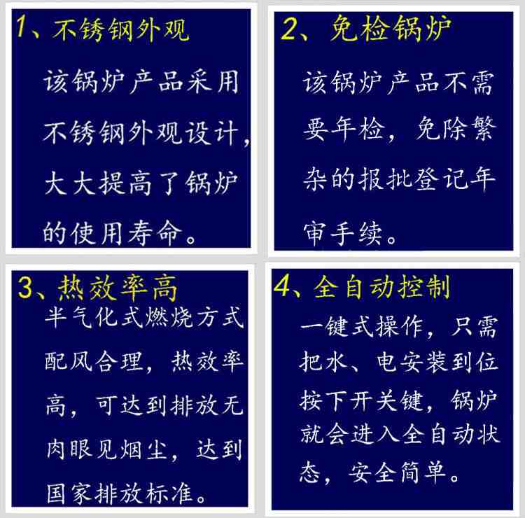 (2)免檢鍋爐:生物質鍋爐免檢,免報裝、免年檢、免手續;省時省事省心省錢,真正做到為顧客服務。